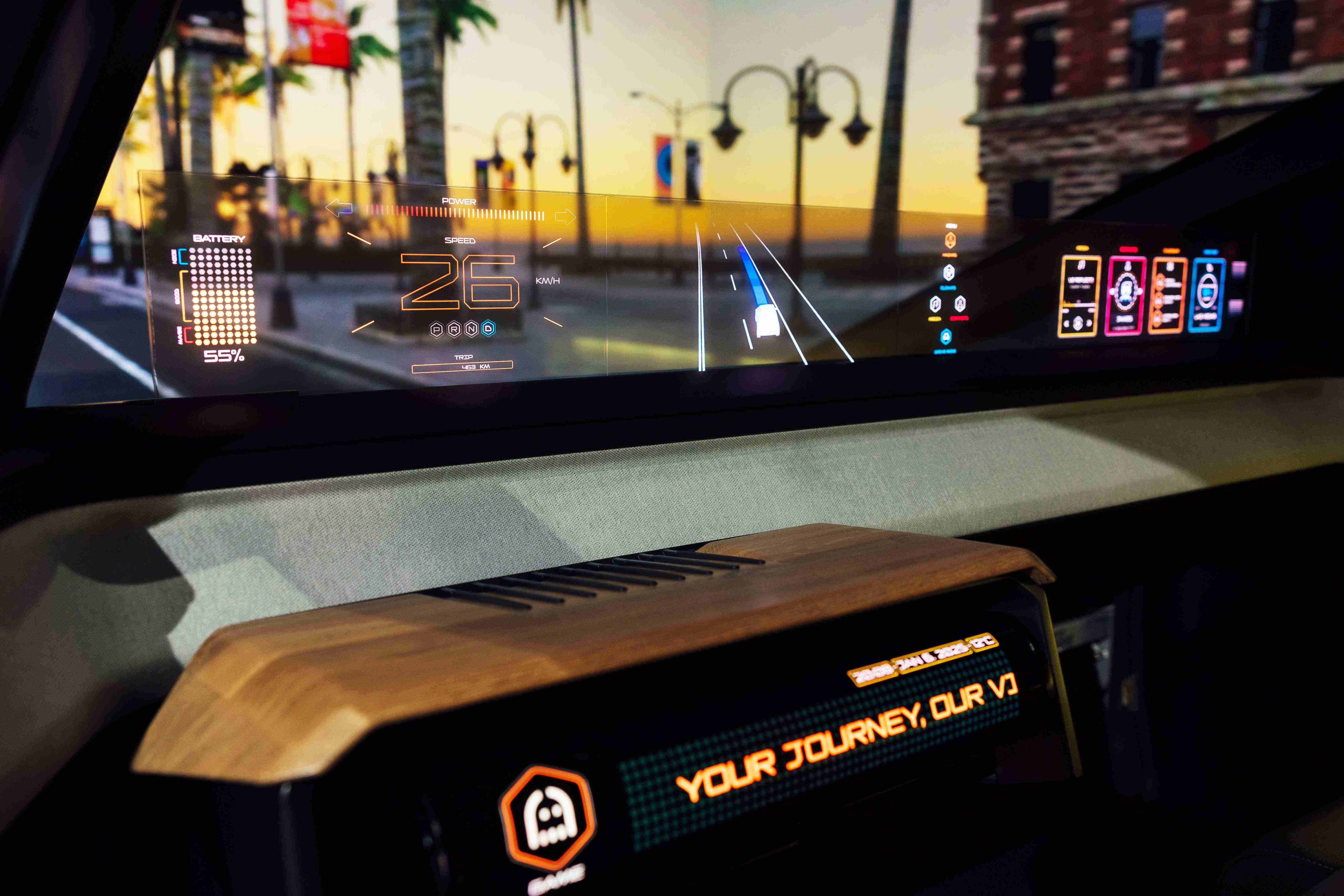 车用运算方案驱动无界透明显示介面(Horizon Image Glass),,,,整合仪表板、、、中控及副驾显示功能为一体式全景呈现,,,,不仅提供清晰的外部视野,,,亦能即时显示车辆状态、、、、导航及路况资讯,,,并赋予个性化设定与驾驶安全警示等加值化服务。。。