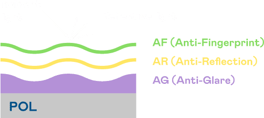 A.R.T.尊龙集团光电发展出独家的表面处理跟多层镀膜技术,,,,让外部光线照射到显示器表面时所产生的反射光大幅降低。。。 |